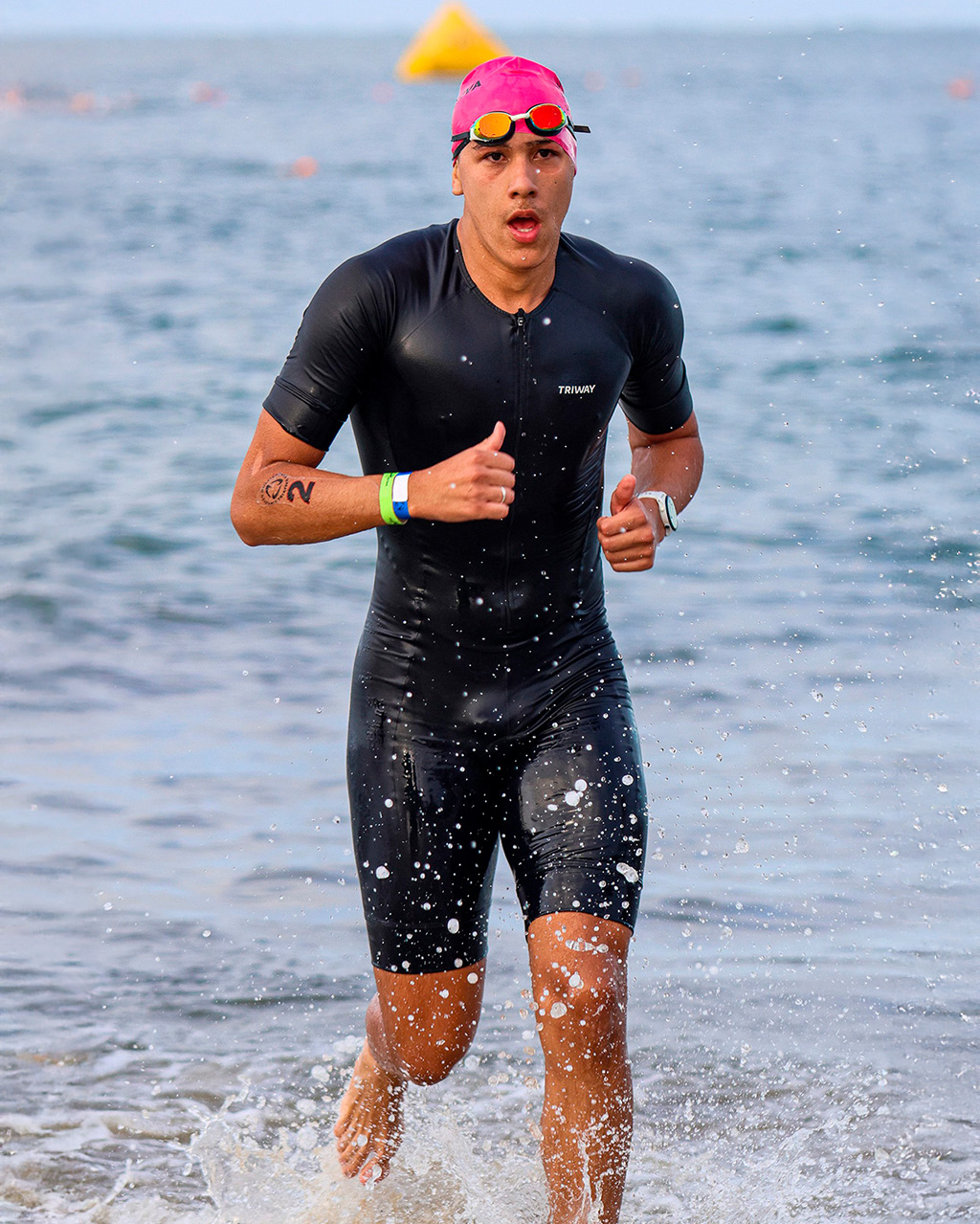 É uma roupa única, desenvolvida especificamente para atender às exigências das três etapas da prova. Leve, aerodinâmico e com secagem rápida, ele ajuda a manter o desempenho do atleta do início ao fim.