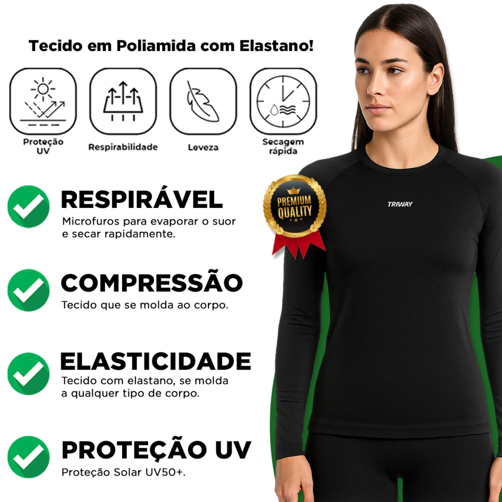 Experimente a Camisa Segunda Pele Triway Sports e sinta o conforto térmico que acompanha seu desempenho em qualquer ambiente.