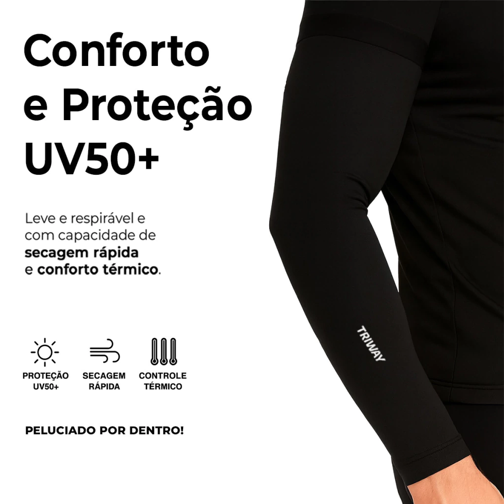 O Manguito Inverno Peluciado Triway Sports foi desenvolvido para garantir proteção térmica e conforto durante treinos e atividades ao ar livre em dias frios. Seu tecido peluciado internamente mantém os braços aquecidos sem comprometer a mobilidade, proporcionando o equilíbrio ideal entre aquecimento e performance.